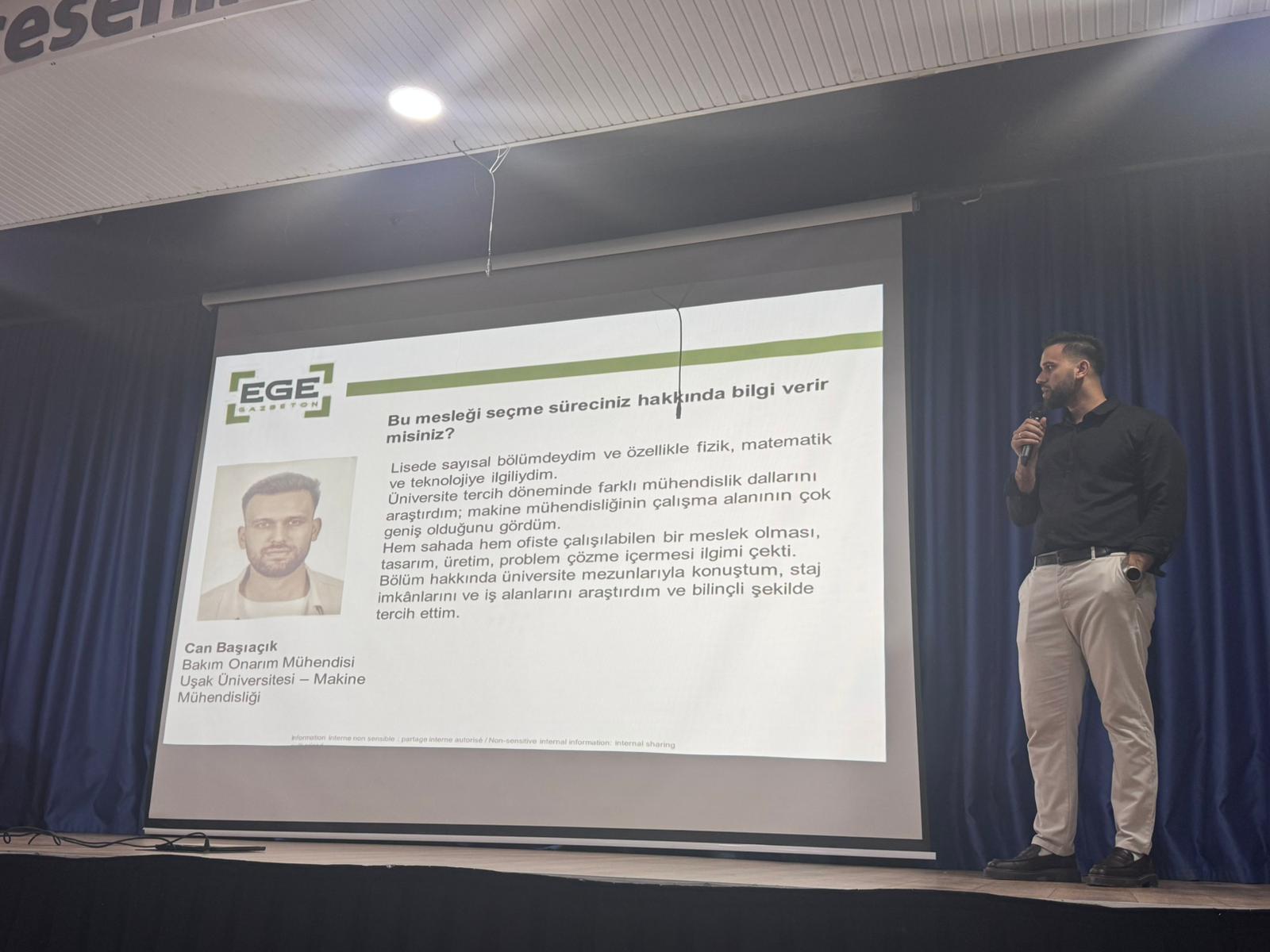 Gerçekleştirilen sunumda ayrıca, teknik bilgi birikiminin önemi, mesleki gelişim süreçleri ve sektörün geleceğine yönelik değerlendirmeler aktarıldı. Öğrencilerin meslek seçim sürecine katkı sağlamayı hedefleyen bu tür etkinliklerin, gençlerin kariyer planlamalarına rehberlik ettiğine inanıyoruz. Egegazbeton olarak, toplumsal sorumluluk anlayışımız doğrultusunda gençlerin mesleki farkındalığını artırmaya yönelik çalışmaları desteklemeye ve sürdürmeye devam edeceğiz.